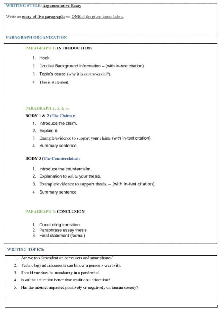 Writing Style Argumentative Essay Write An Essay Of Chegg Com